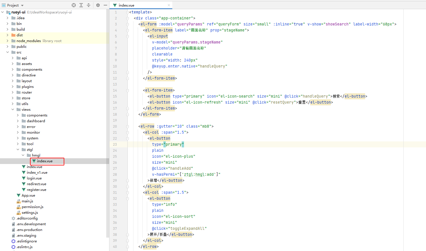 该菜单功能的vue页面位置如下
